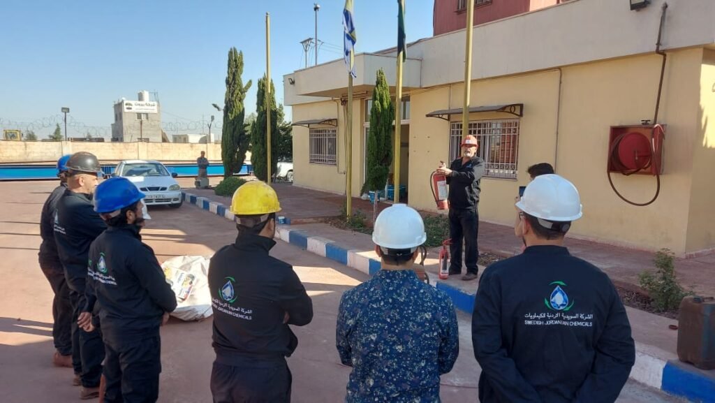 Swedish Jordanian Chemicals Company conducted a practical workshop on fire safety procedures and emergency evacuation to enhance employee readiness, protect lives and property, and ensure adherence to the highest safety standards.